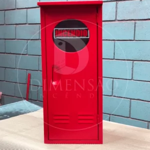 O abrigo para extintor de incêndio é fabricado em chapa de aço carbono com pintura eletrostática vermelha , ideal para proteger extintores portáteis contra intempéries, poeira e danos mecânicos, possui porta com visor, fechamento tipo rolete, além de aberturas de ventilação que evitam umidade interna.