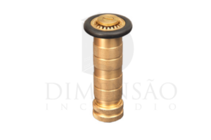 Esguicho Regulável tipo Mangotinho 1’’ . Bocal regulável para 3 posições com anel de borracha para proteção. Latão Fundido. Acabamento : Usinado.Utilizado para combate a incêndio, opera em 3 posições: bocal fechado, jato sólido e neblina com variação de abertura do leque até 120º.